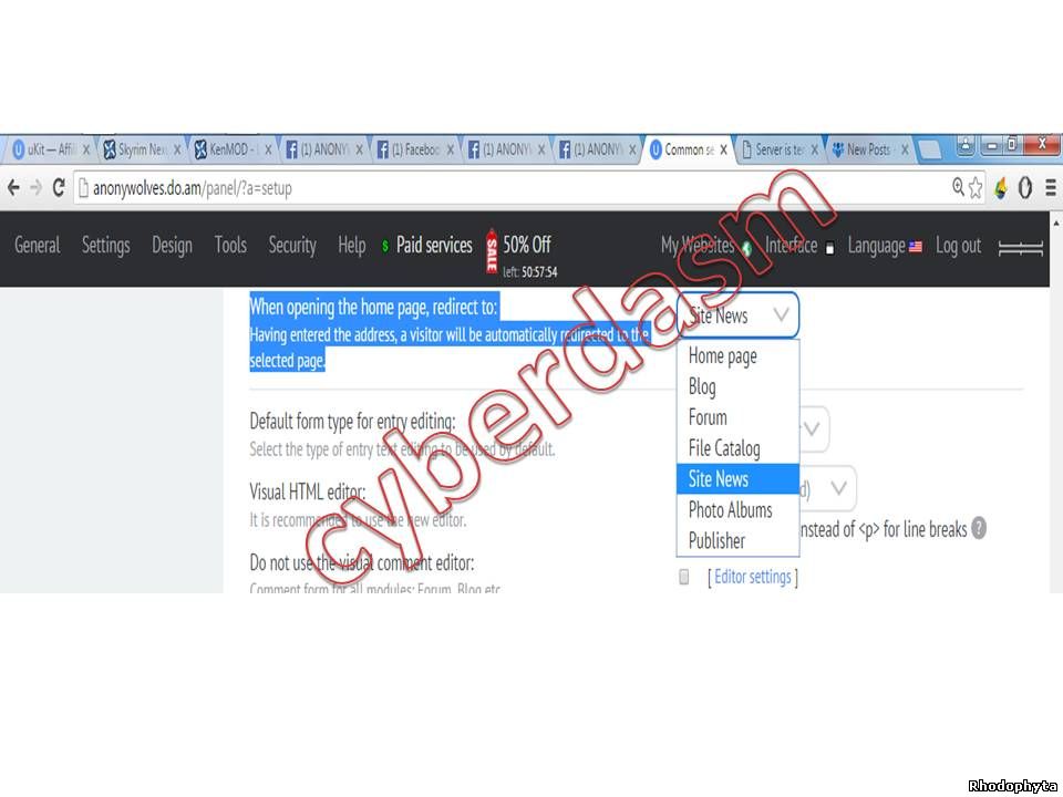 4. CP >> Page editor >> Module Setting. Find and check the following: "The domain (eg:www.lizeal.tk) is a primary one:" (Just to make sure that your website will use www) Then redirects your website homepage to Site News (it is where you paste your code for phishing website; Refer on the second image below) Find this following sentence; "When opening the homepage redirect to:" Lastly don't forget to hit "Save".